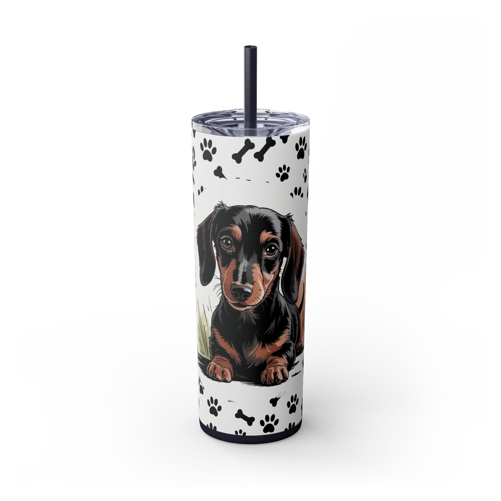 Dachshund Paw Print Skinny Tumbler 20oz — Cute Wiener Dog Travel Cup with Straw