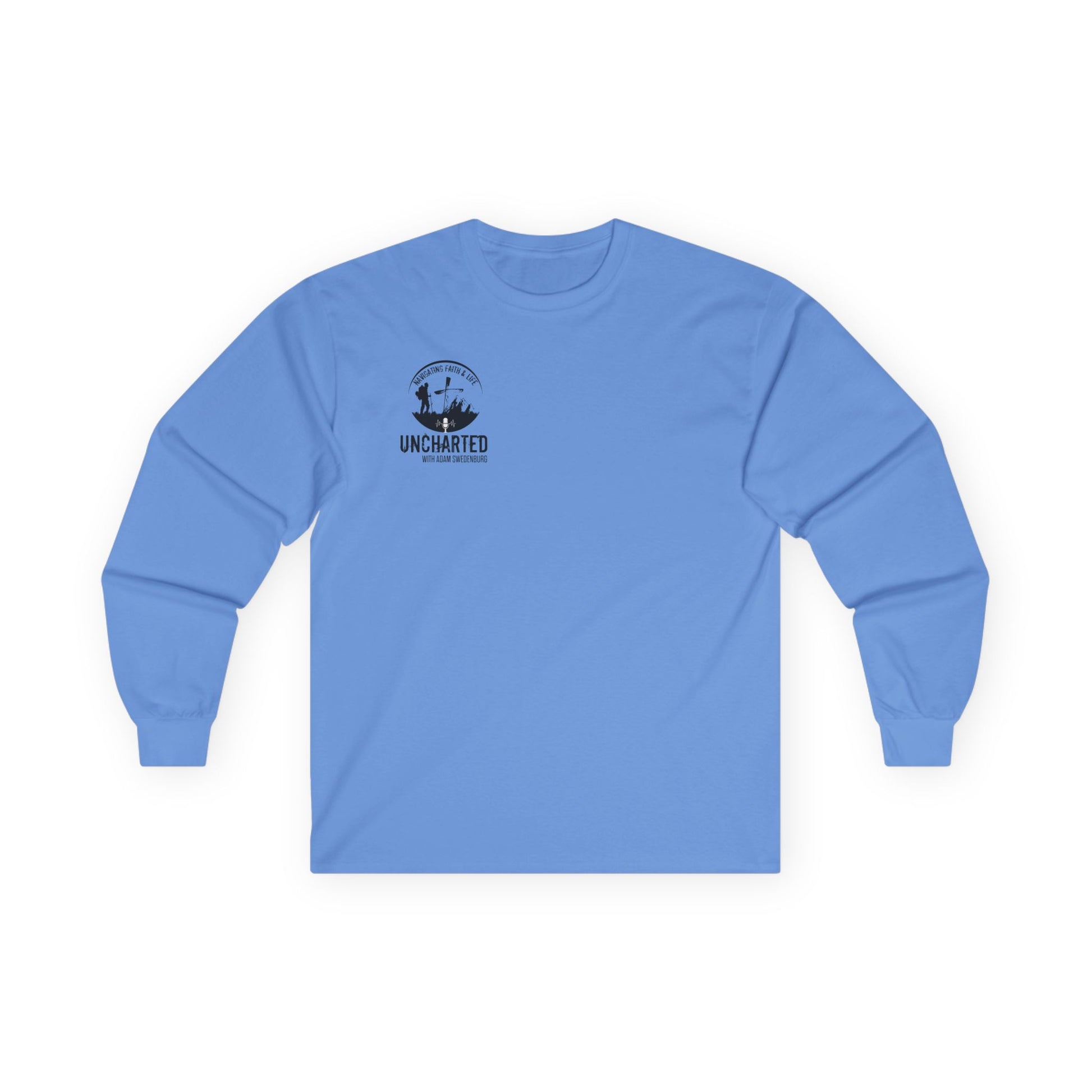 A soft, vintage-feel long sleeve tee that carries a quiet message of faith and gratitude. The front chest shows a small, understated emblem, while the back features a warm, seasonal cross adorned with poinsettias, a red bow, and delicate snowfall—accompanied by the scripture line “I will praise Him in every season (Psalm 145:2).” The medium-weight cotton gives a lived-in comfort that layers well under jackets or wears alone on cool mornings. This shirt isn't loud — it settles into daily life and becomes a gentle reminder of steady devotion through holidays, service days, or slow Sunday afternoons.